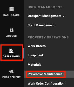 Select Operations from the left menu, then select Preventive Maintenance.