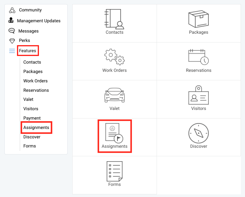 Assignments for Residents Assignments allow specific items or spaces to be assigned to an individual or unit. For example, reserved parking spaces, bike racks, and storage lockers can be assigned to residents who pay for these additional perks. ...
