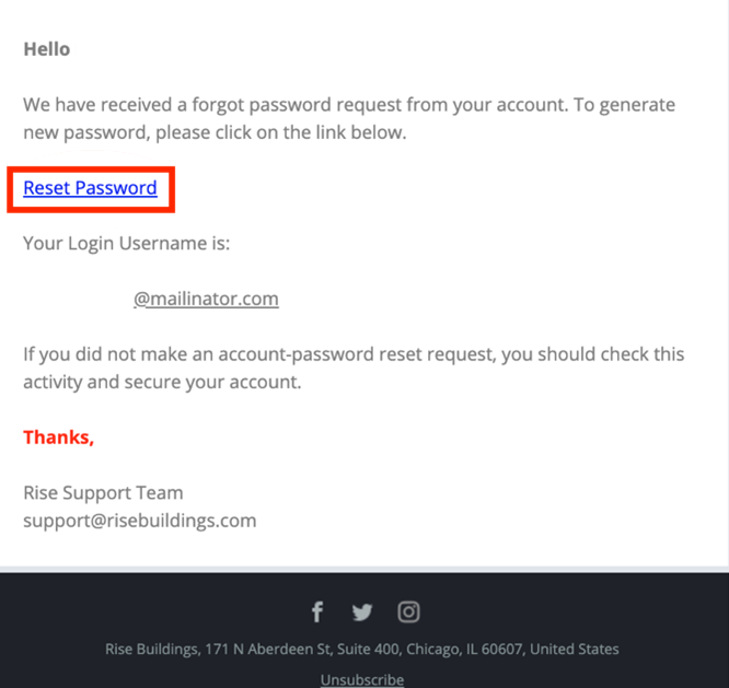 Check your inbox for the password reset email and select the