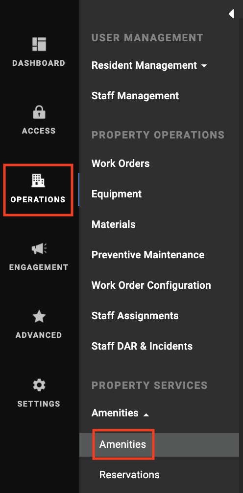 Select Operations from the left side menu. Next, select Amenities and then Reservations.