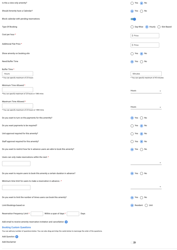 - Disclaimer: Any disclaimers you would like Residents to know before they book the amenity.