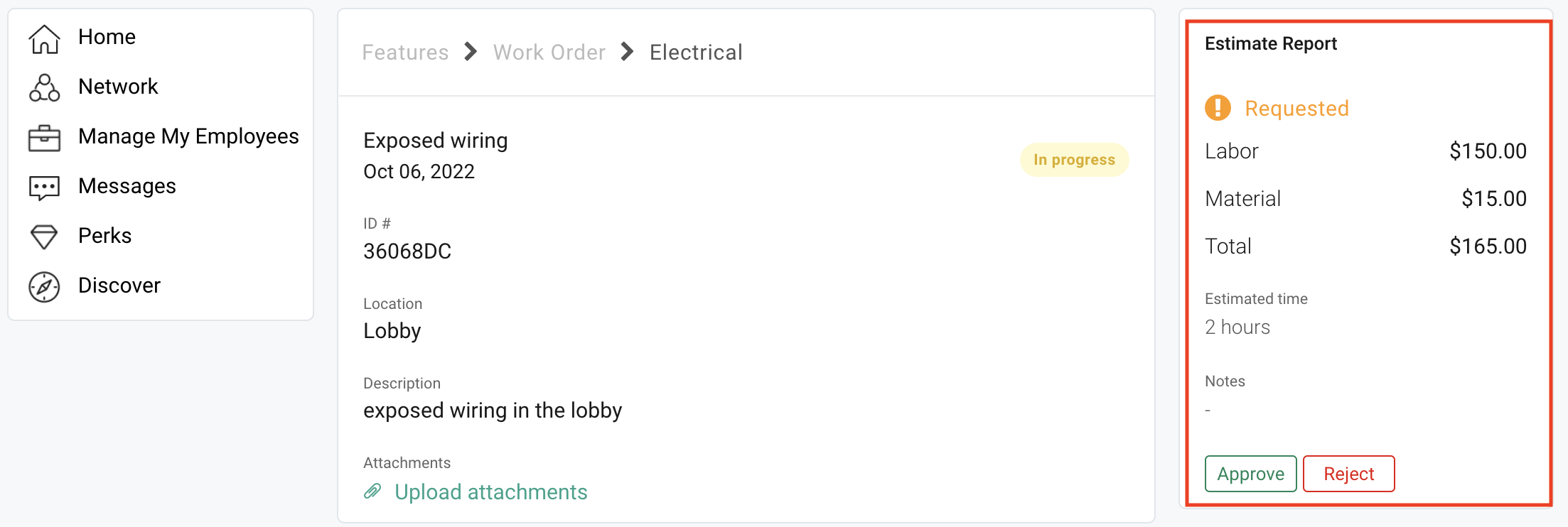 Note: If you reject the amount, property staff will edit and resend a new estimate report.
