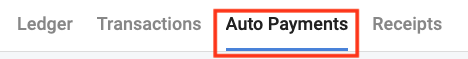 Once in the ledger, select, "Auto Payments" from the top navigation.