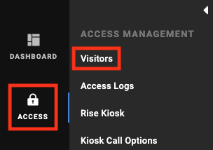 Upon logging into the Admin Portal, select Access and then Visitors.