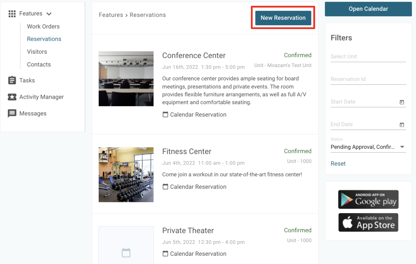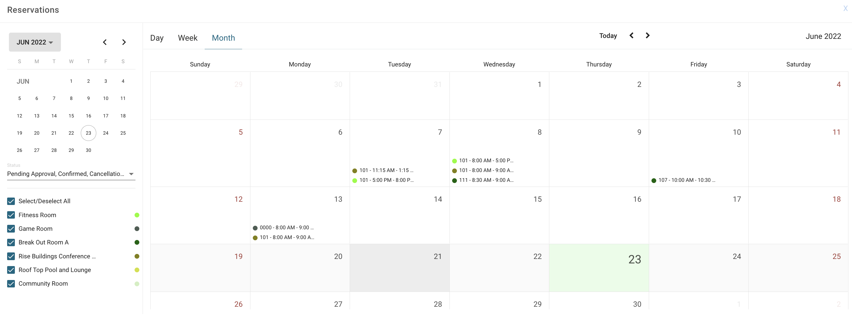 Here you'll be able to see a calendar view of all the reservations for the past, present and future.