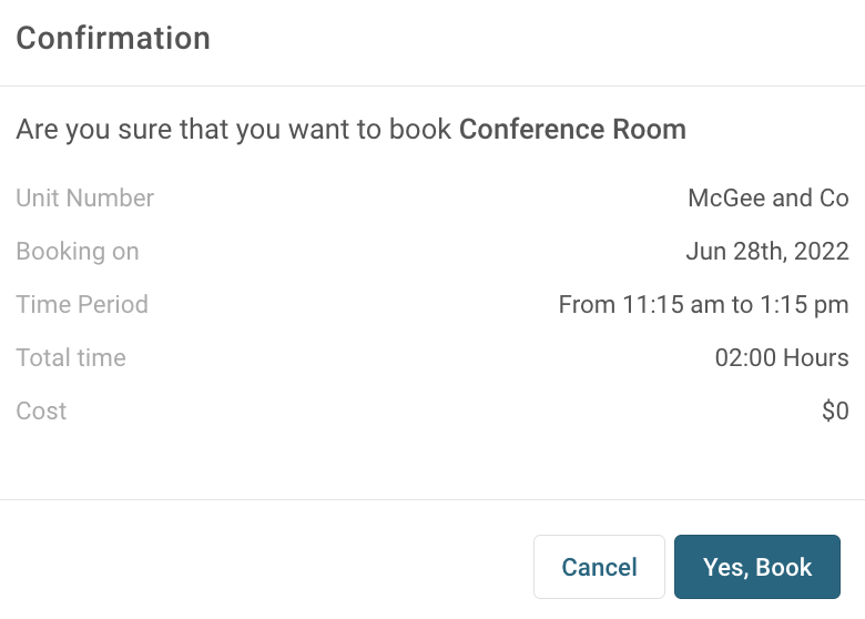 Confirm all the information is correct, and select Yes, Book to create the reservation.