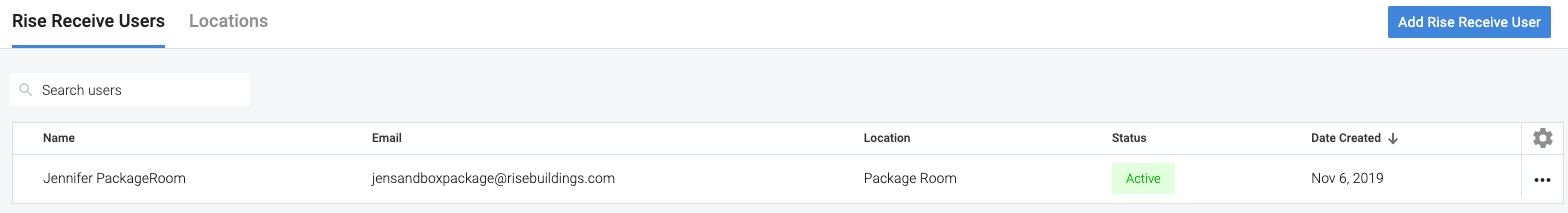 Package Location: Location is a required field and must be set up before adding a Rise Receive User.