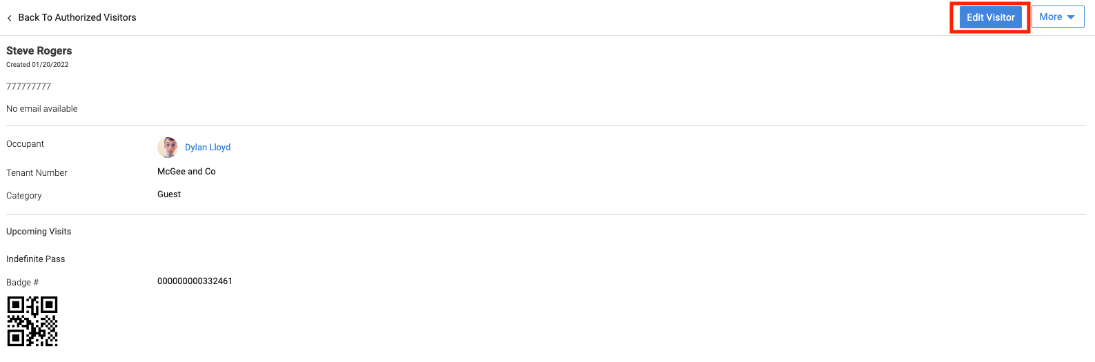 Here we are able to see all visitor passes that have been created and who they are for. This includes their name, contact information, the occupant giving access, as well as the pass type and dates the pass is valid.