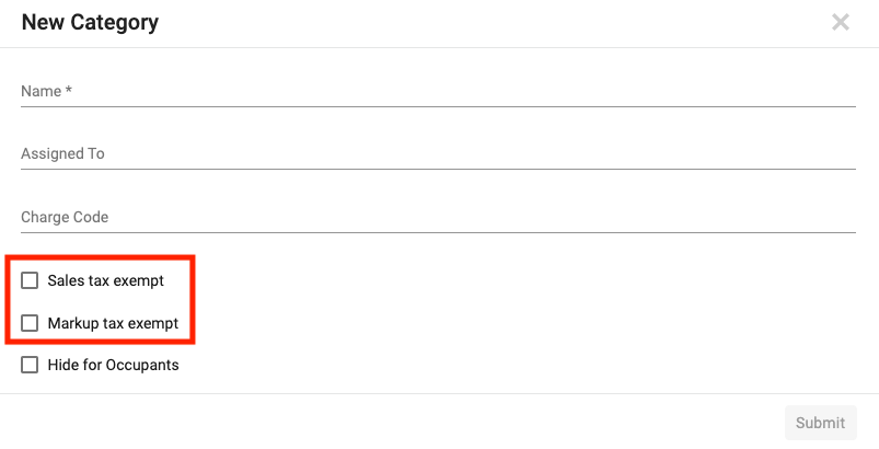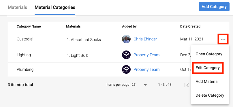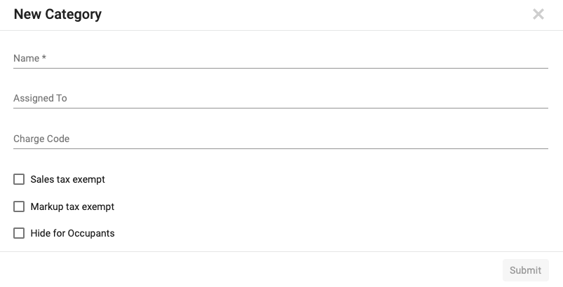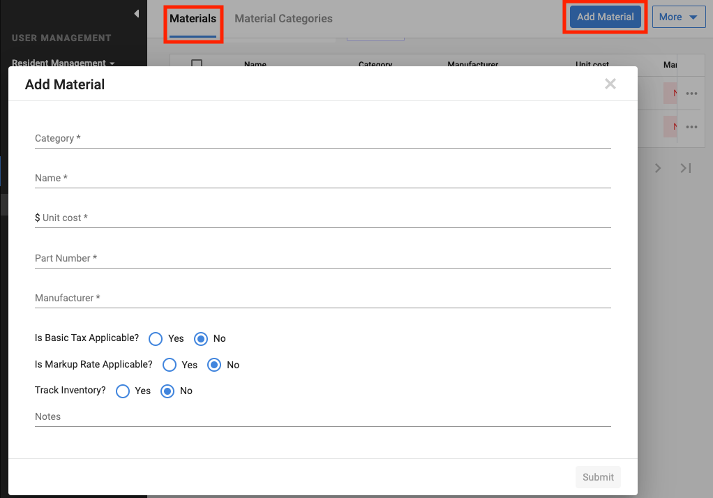 - Category: Select the category of the material. The category must exist prior to adding new material.
